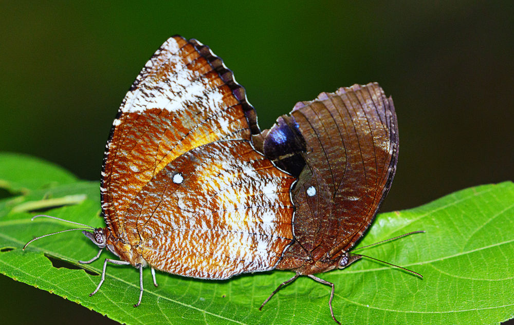 Elymnias hypermnestra is dimorphic, meaning males and females do not look alike.