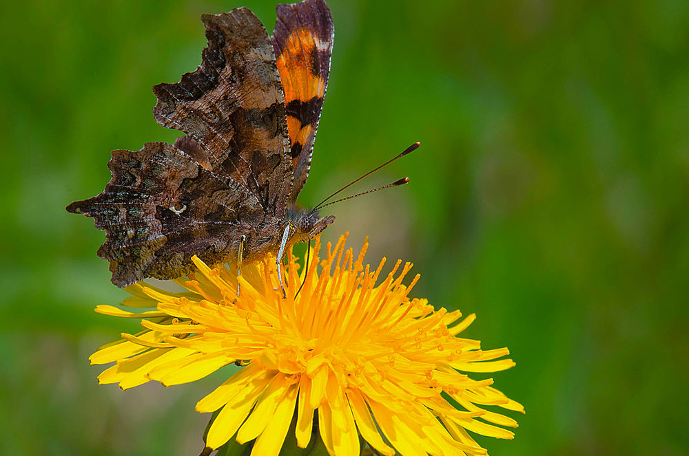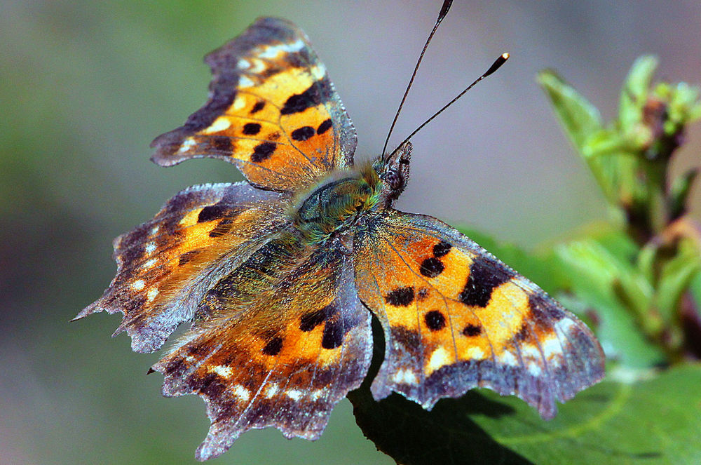 Polygonia faunus’ preferred terrain includes forests, mountain stream sides and canyons.