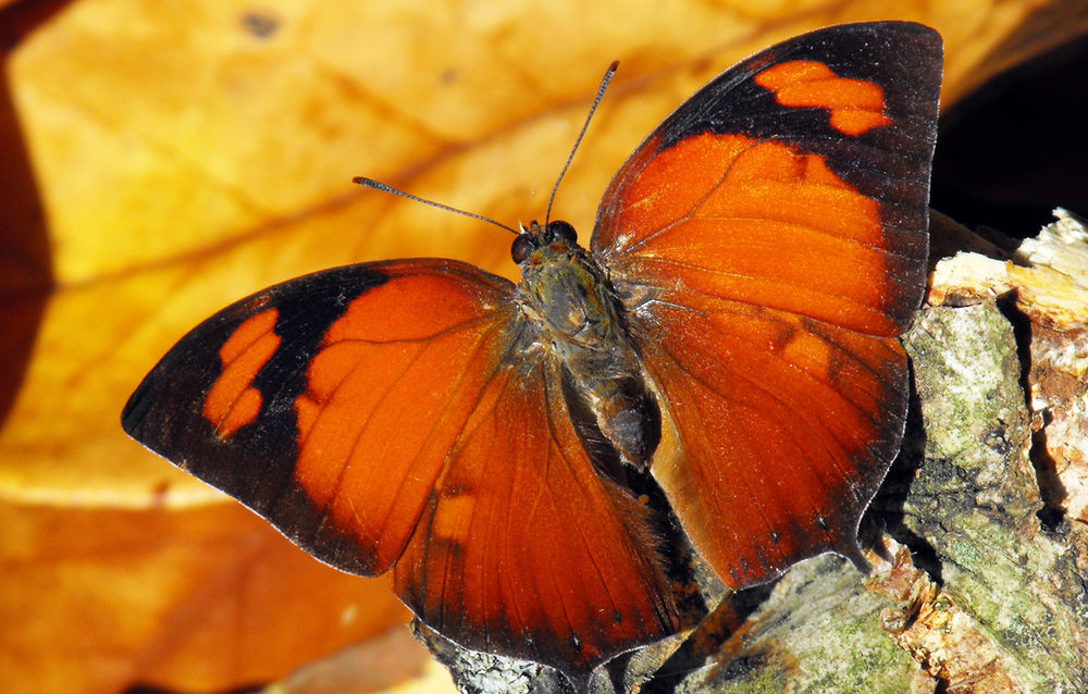 As is the case with other leafwings, when the Pointed Leafwing’s wings are closed, it is well camouflaged to resemble a dead leaf.