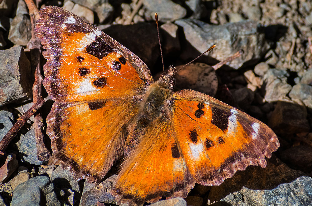 Also known as the Satyr Anglewing, the Golden Comma or the Western Comma.