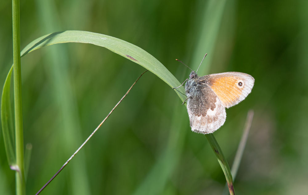 Small heaths are considered lateral baskers, angling their bodies 90° to the sun with their wings closed when resting.